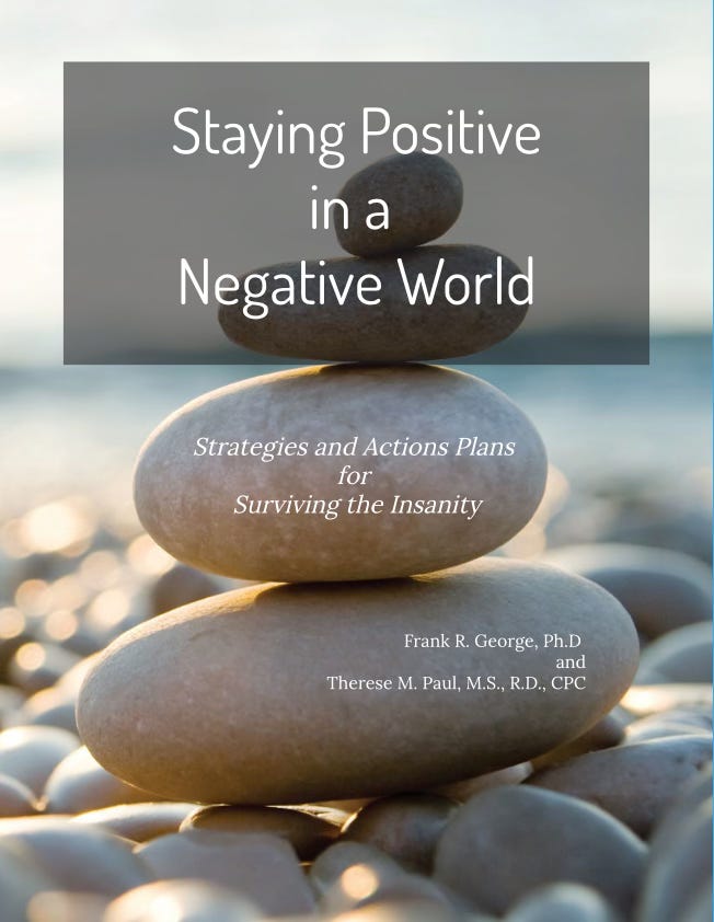 If you’d like to dive deeper into breaking free from the chaos and maintaining your sanity and health, check out “Staying Positive in a Negative World — a workbook I developed with Therese Paul, M.S., R.D., CPC.